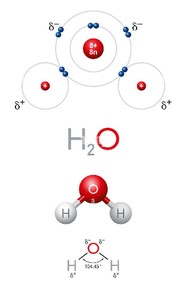 Sono delle piccole cariche elettriche negative (elettroni) i legami chimici che tengono uniti due atomi di idrogeno con un atomo di ossigeno nella molecola dell'acqua.L’acqua è un composto fondamentale per la vita, formando più del 60 per cento del peso del corpo umano e partecipando a molti processi biologici.